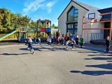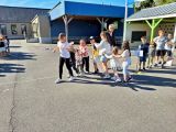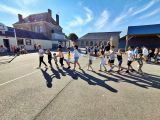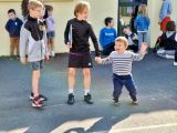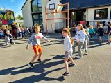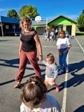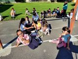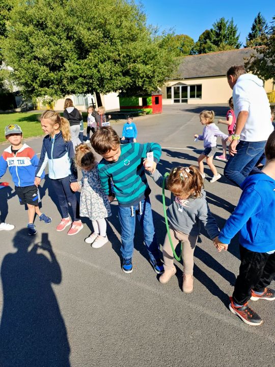C’est sous un grand soleil que petits et grands se sont retrouvés pour relever en équipe différents défis sportifs dans la cour de l’école : marcher sur une corde, montées de genoux, talons-fesses, ronde inversée, chenille les yeux fermés, sauts de grenouille…