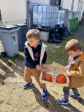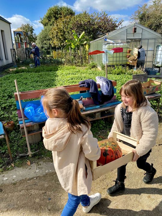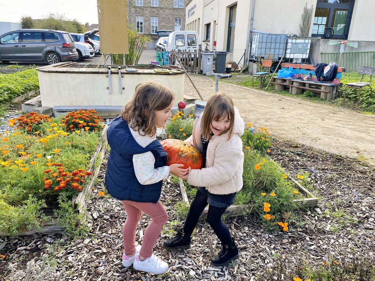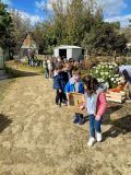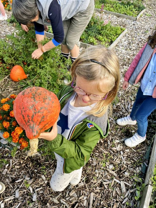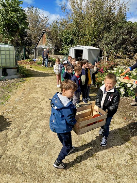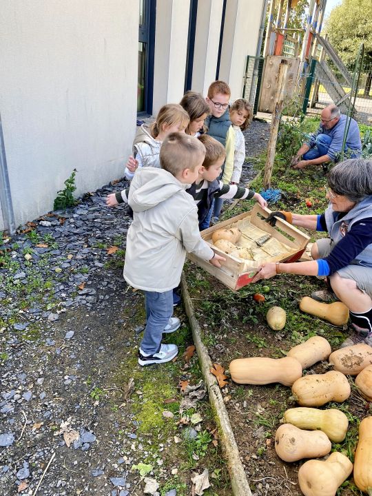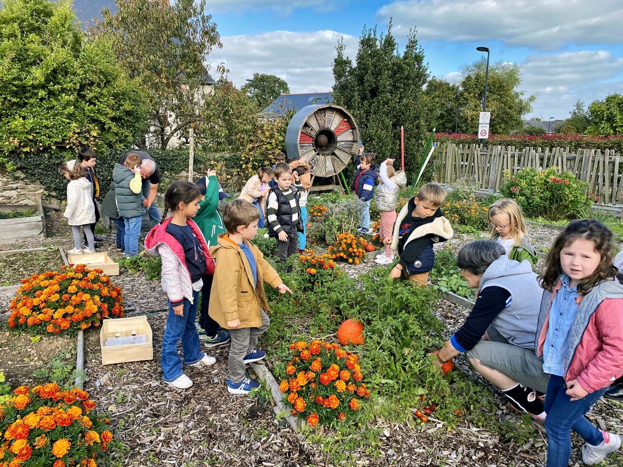 Ce lundi 6 octobre, les élèves de la classe de GS sont allés ramasser les courges dans le jardin pédagogique.