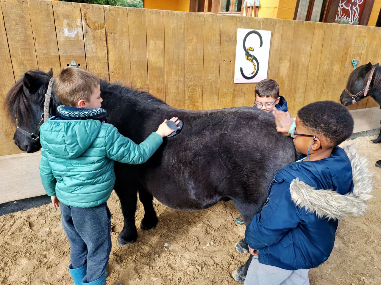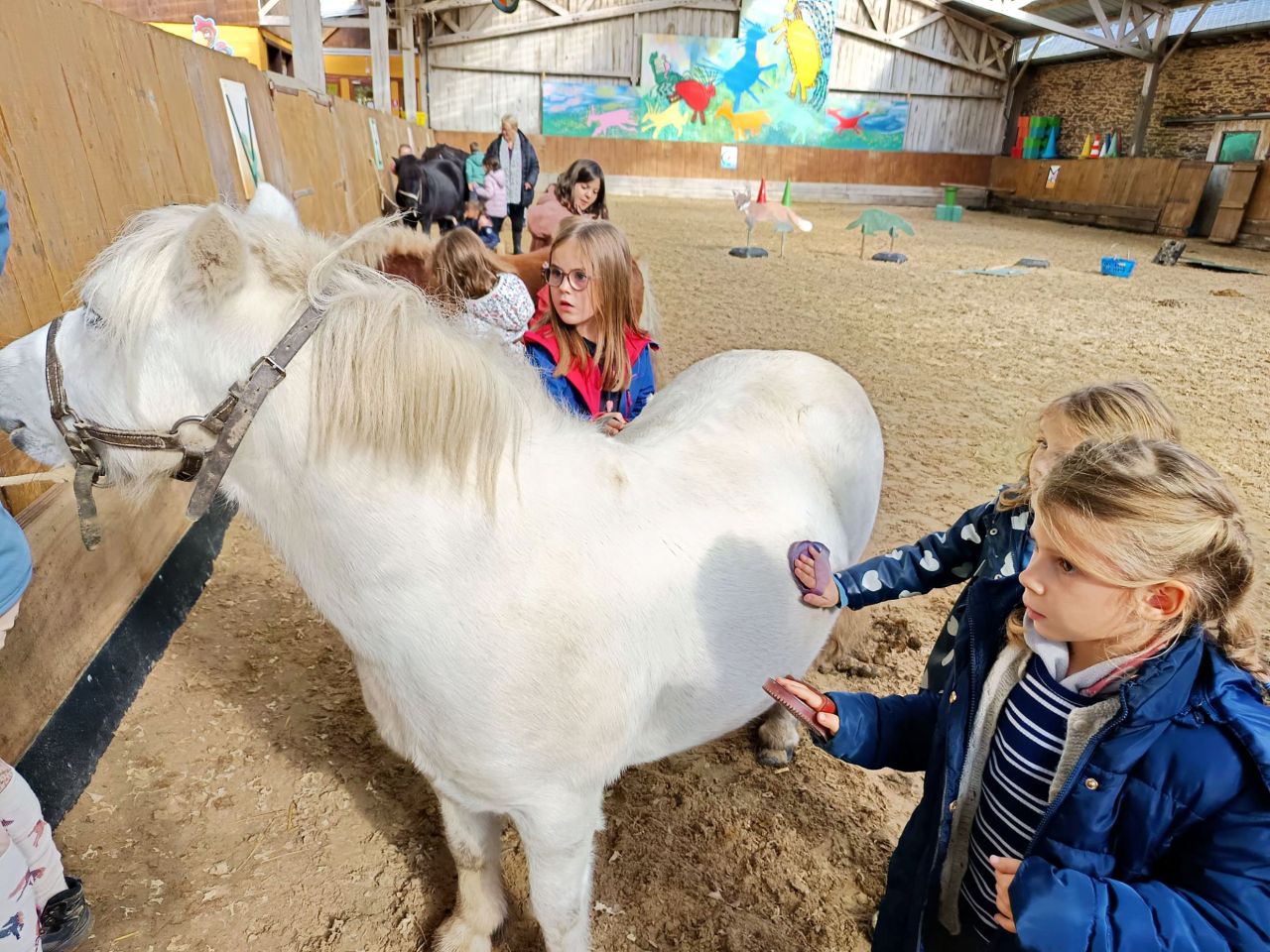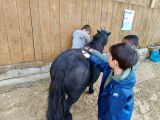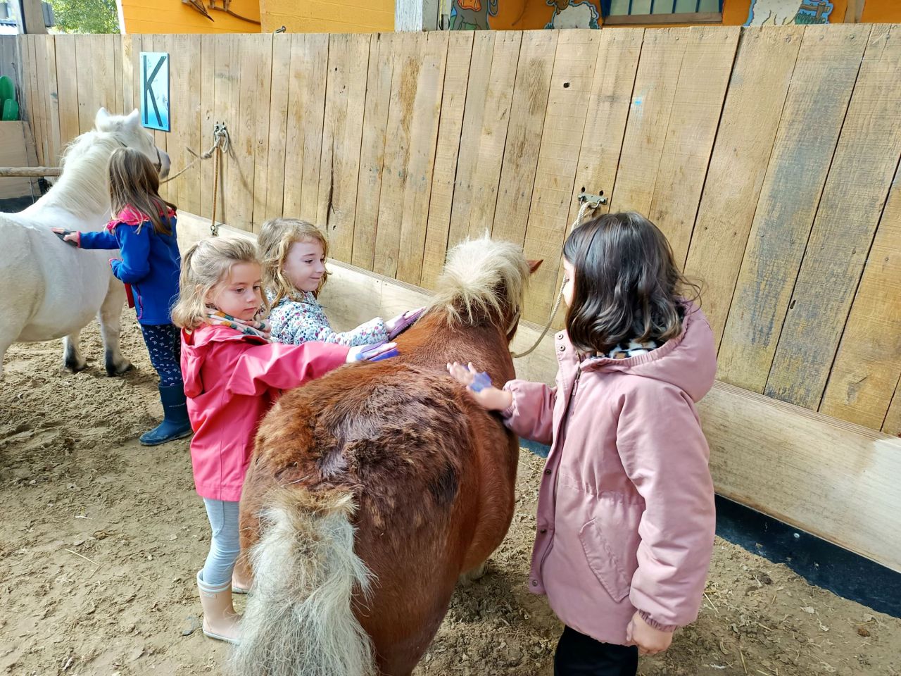 Les enfants ont ensuite fait connaissance avec les poneys : ils ont pu les promener, les brosser et commencer à se familiariser avec leur environnement.