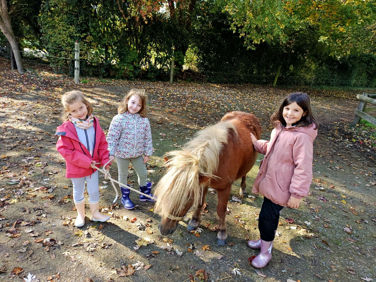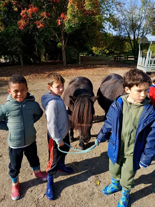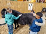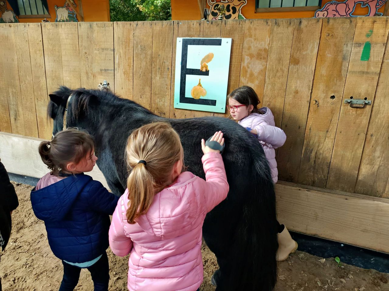 Les enfants ont ensuite fait connaissance avec les poneys : ils ont pu les promener, les brosser et commencer à se familiariser avec leur environnement.